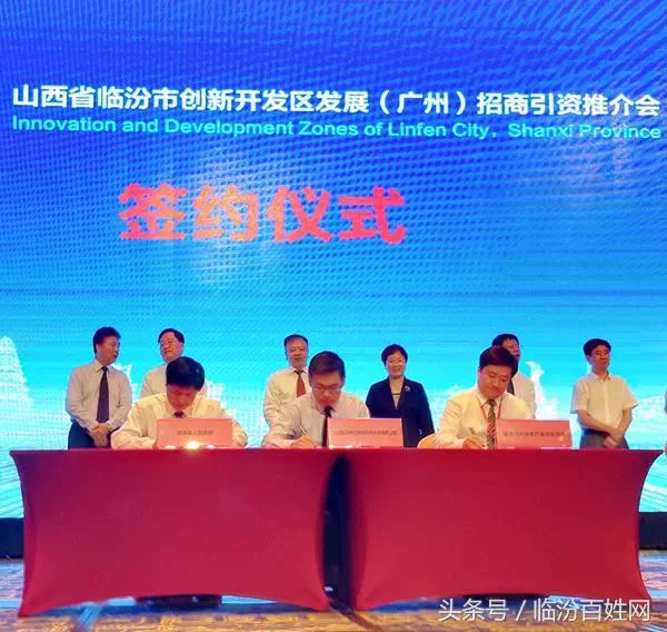 广州招商会签约仪式,临汾市委书记岳普煜,市长刘予强出席